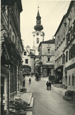 Karte mit der Wildprethandlung Knauer und Glasgeschäft Hütmayr (Bildmitte)